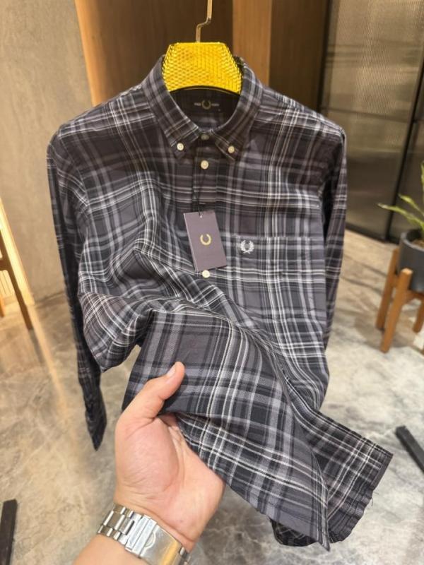 FRED PERRY GREY WHITE CHECKS OXFORD COTTON SHIRT