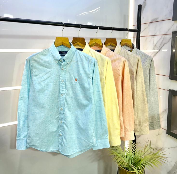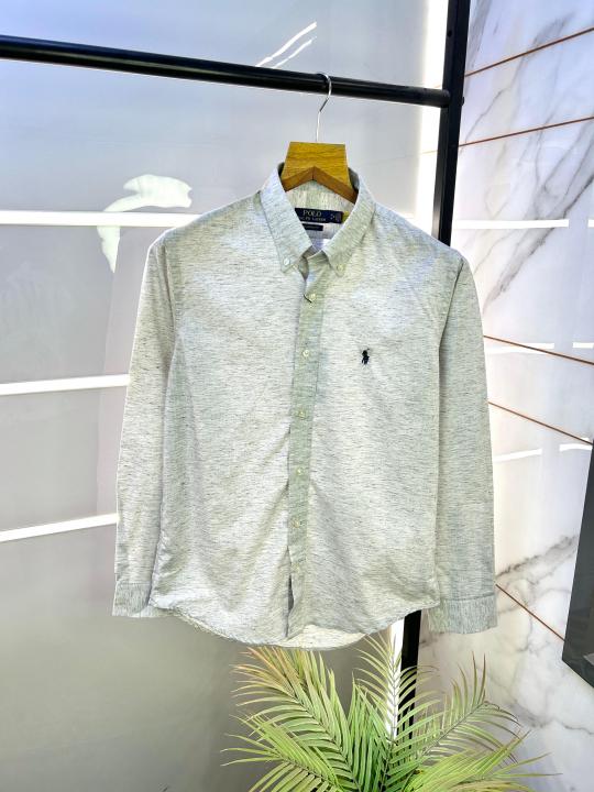 Sale Ralp h Lauren Linen Grey Embroidery Logo Super Premium Shirt F2608-GY